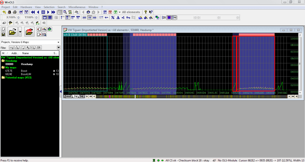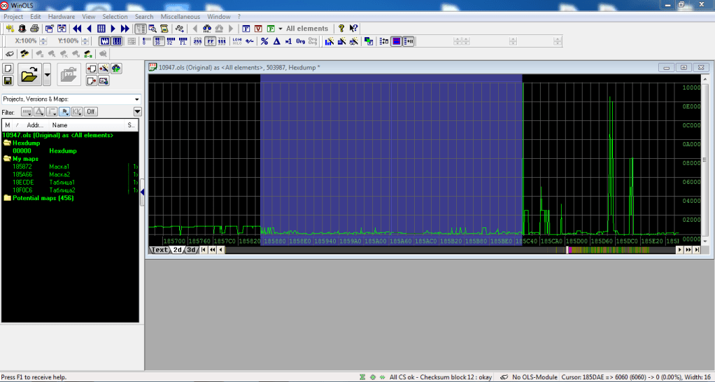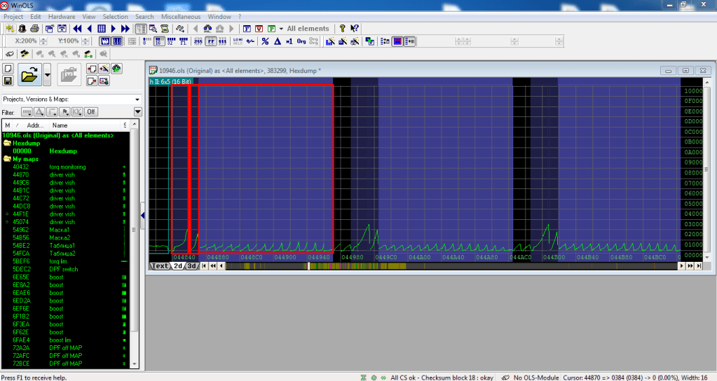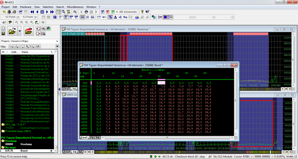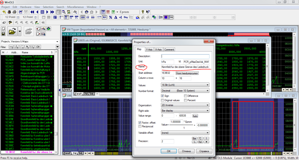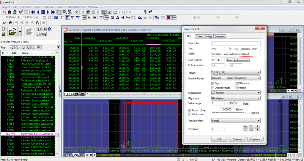 Итак, открываем в WinOls сток файл и сравниваем его с тем что было сделано предыдущим калибровщиком (если эта тема будет вам интересна я сделаю небольшую инструкцию по работе с WinOls)